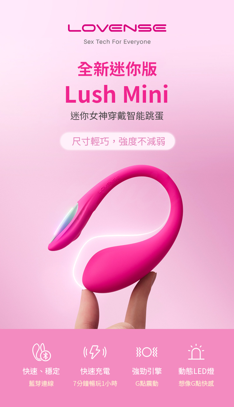 全新 Lush Mini 體積縮小 32%,重量減輕約 23%,更適合入門者、穿戴者與喜歡隱密快感的使用者。迷你卻依舊強勁震動,搭配 Lovense Remote App,帶來自由、遠距、無拘束的享受。